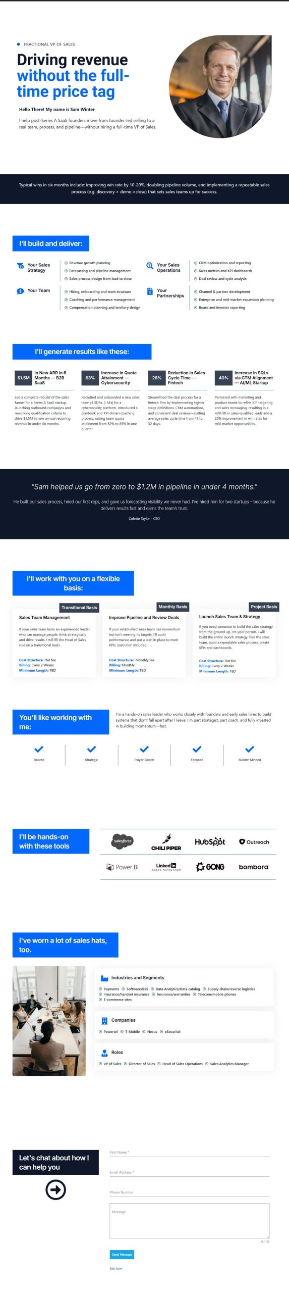 Best if you help companies over time — blending in as a leader, shaping strategy, and driving major outcomes. (Think: interim roles, transformation leadership, part-time executives.)